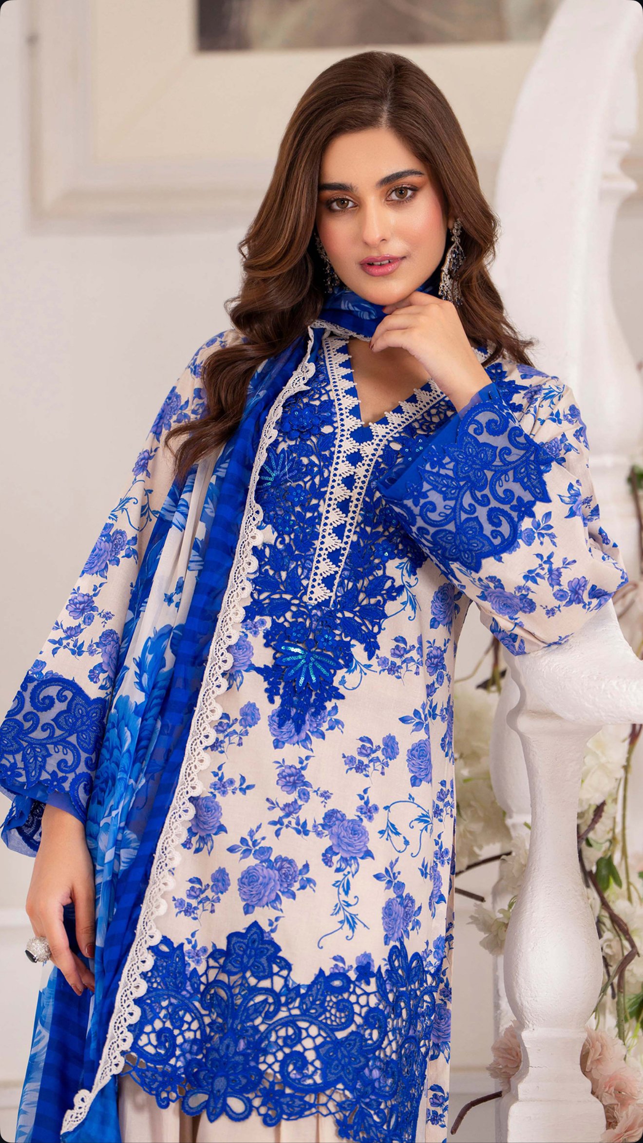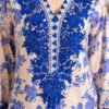 Theses dresses feature a stunning printed shirt with intricate blue cutwork 3D flower detailing.