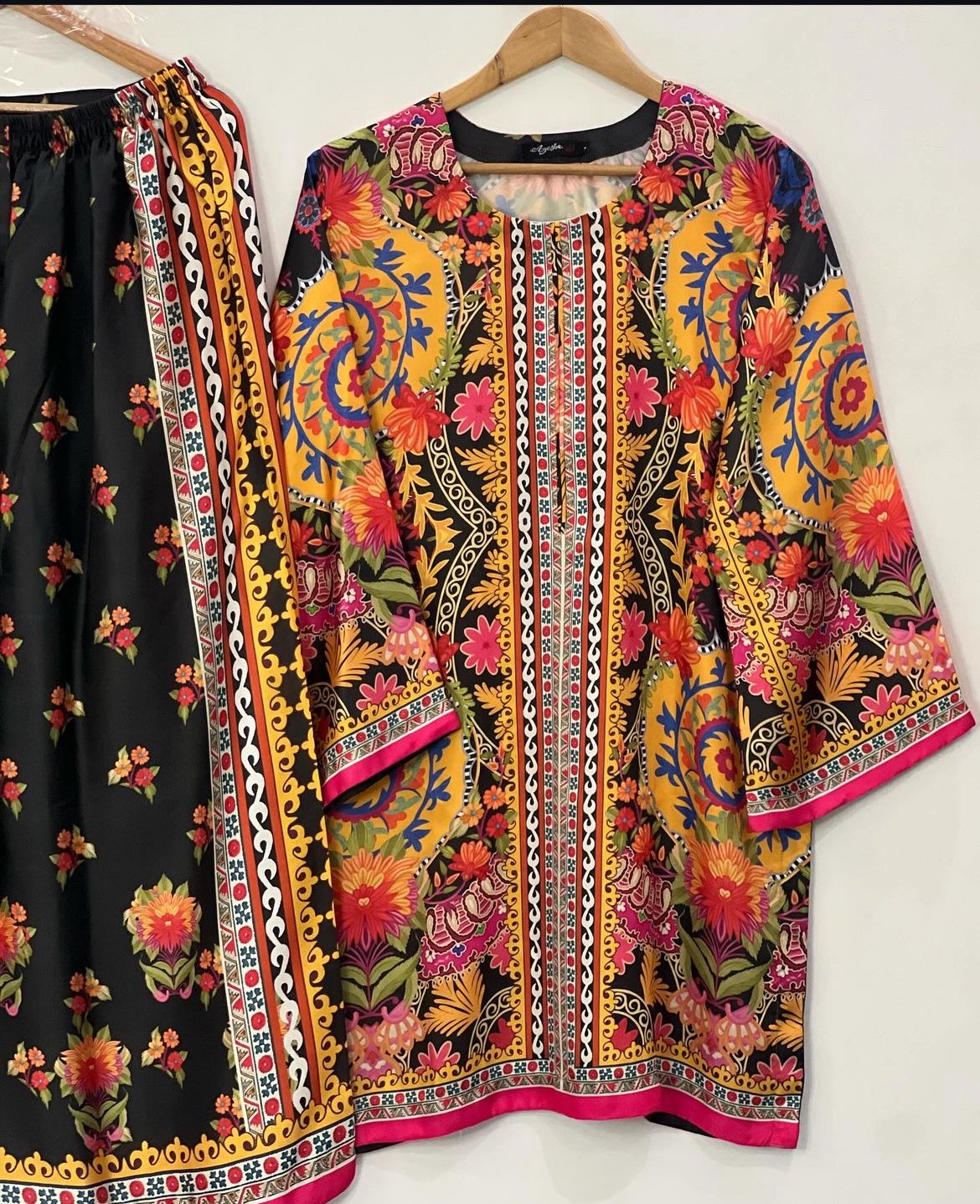 Black Floral Silk Printed 2 Piece