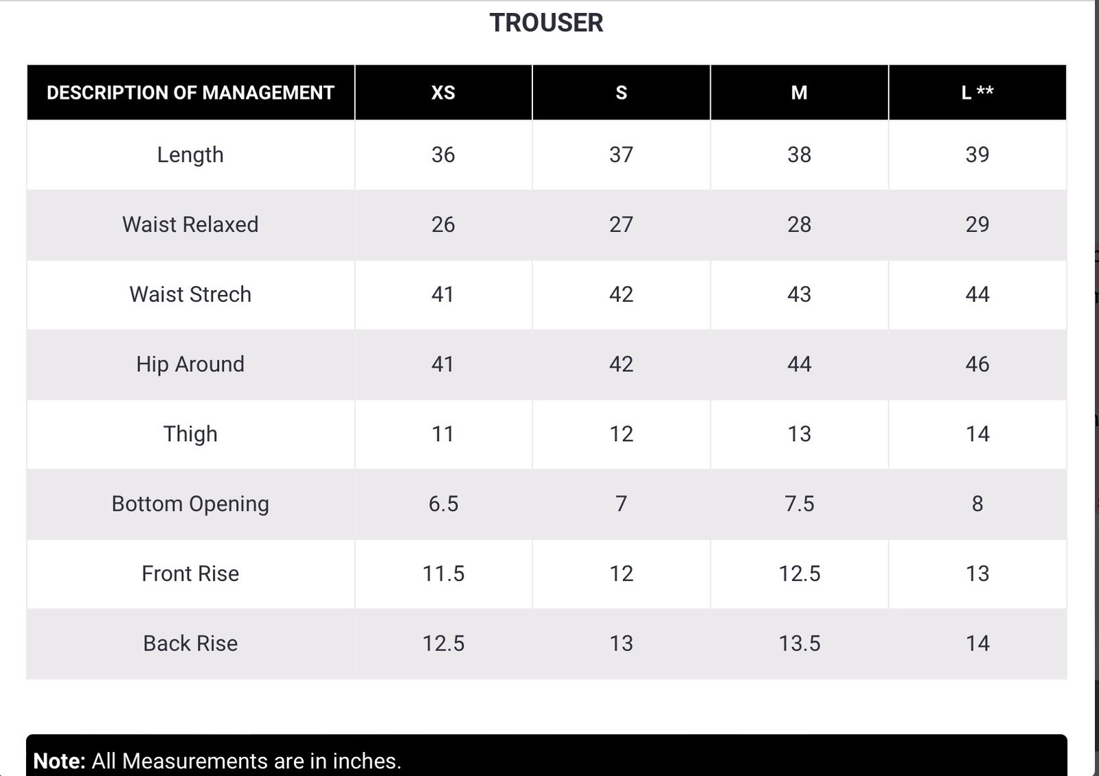 Trouser: Included.