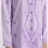 Look chic and sophisticated with this mesmerizing outfit. Crafted from gorgeous lilac fabric, the 2-piece elegant suit features a beautiful shirt with exquisite schiffli embroidery and floral designs along with a scalloped bottom opening. The solid trouser completes the stylish ensemble, perfect for formal events this season.