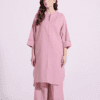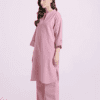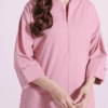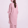 A minimalistic composition is layered over this graceful ensemble illustrated in baby coral shade. It features an elegant silhouette shirt adorned with scintillating bead at sleeve cuffs. Paired with a matching trouser, this sophisticated outfit is a perfect option to look elegant this season.