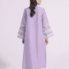 An aesthetically appealing composition is portrayed on this graceful outfit rendered in lilac shade. It features a classy silhouette shirt with keyholes at front neck, beautifully adorned with intricate embroidery with scintillating details illustrating captivating floral designs. Adorned with delicate lace, the sophisticated shirt is paired with a trendy solid trouser, this gorgeous outfit is a style statement for formal gatherings this season.