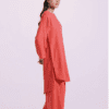This gorgeous outfit is a perfect choice for everyday events. The contemporary shirt offers an elegant and classy look, in a charming crimson red color. The minimalist look is accentuated with a trendy fit and round bottom opening. Paired with a matching flared trouser, make a statement wherever you go with this gorgeous look.