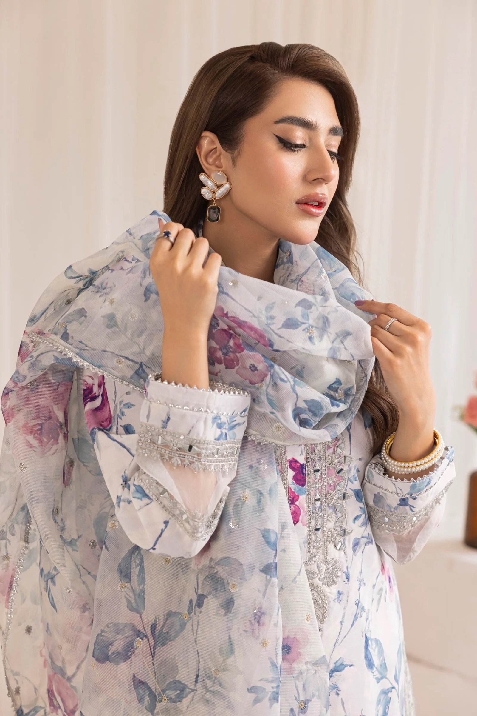 PRINTED 2 BY 2 EMBROIDERED DUPATTA FINISHED WITH HIGY QUALITY SILVER LACE