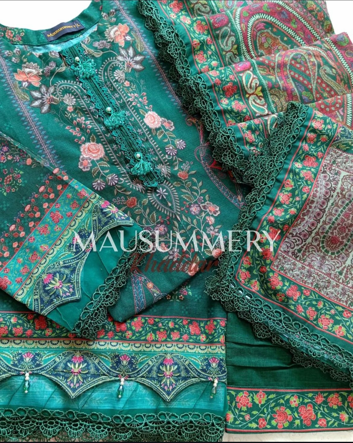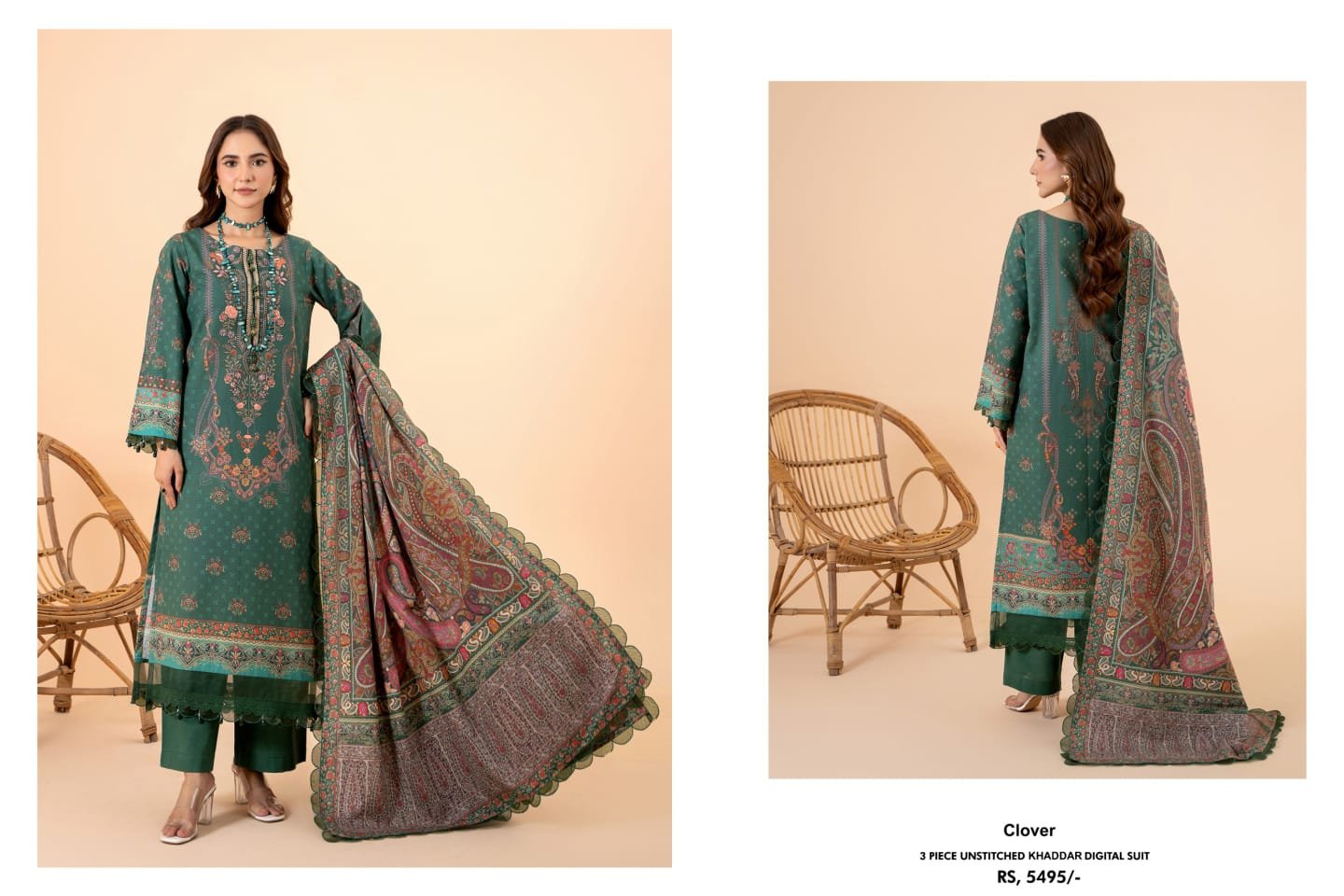 Digital Printed Khaddar Shirt Along Beautiful Laces & Handwork.