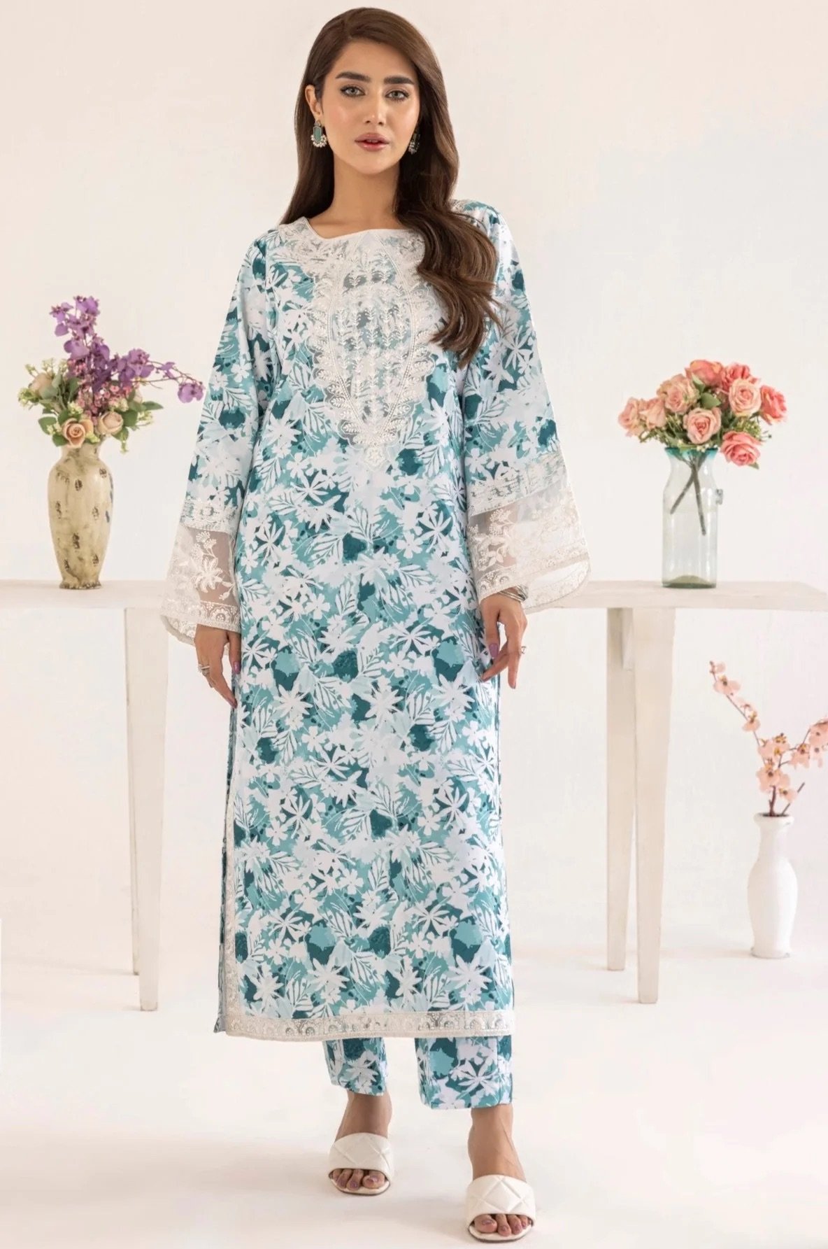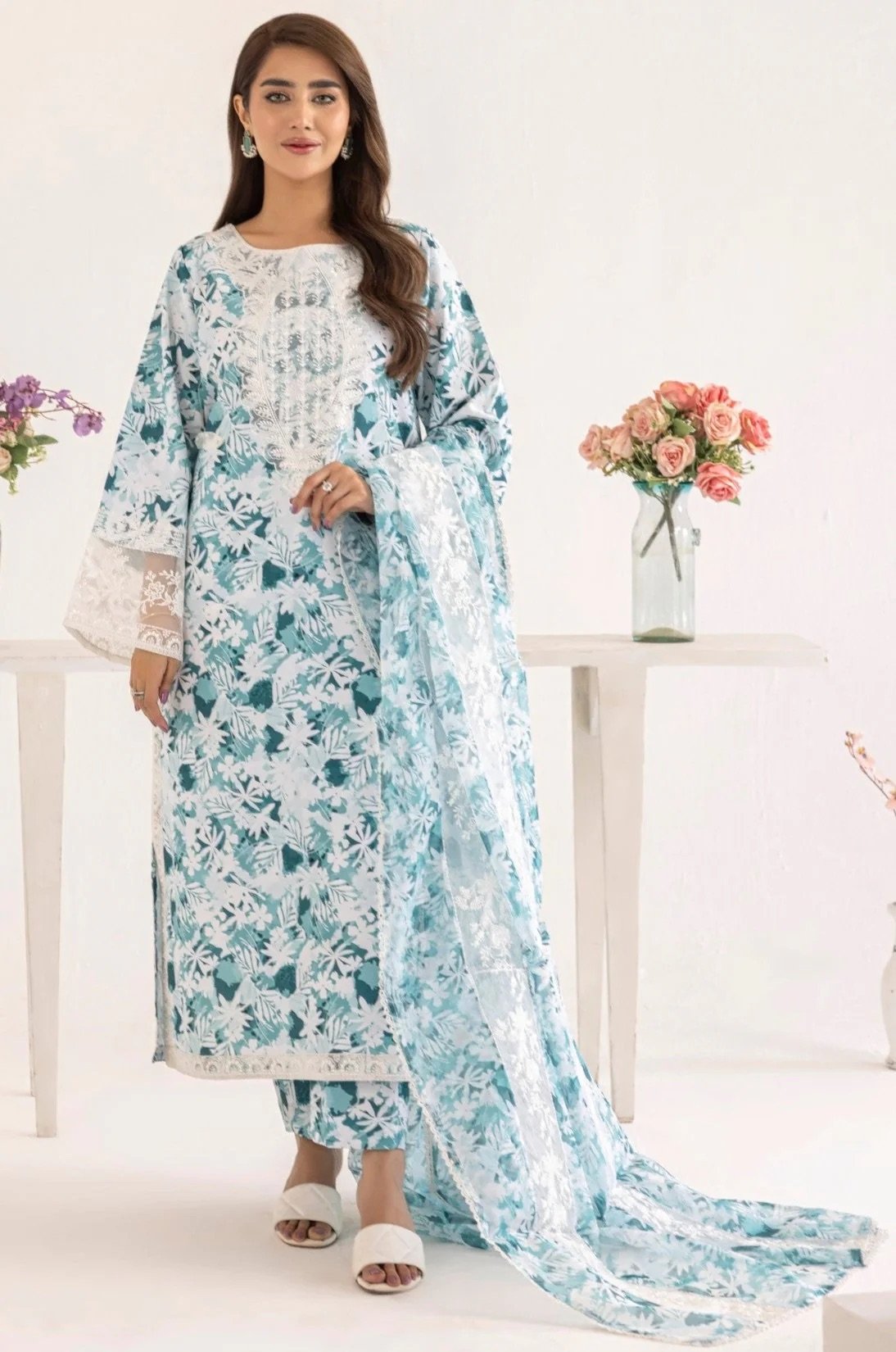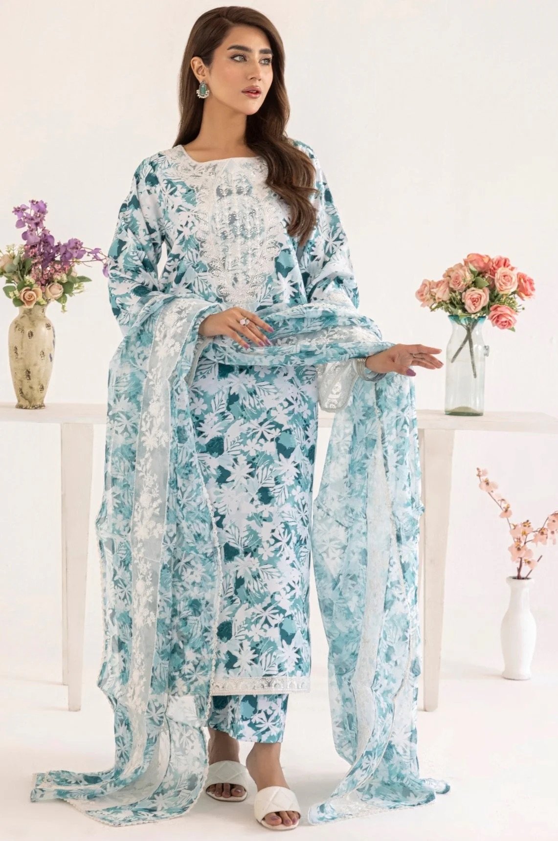 PRINTED MONAR NET DUPATTA WITH EMBROIDERED BORDERS