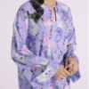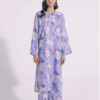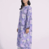 This gorgeous ensemble is an elegant two-piece outfit showcasing beautiful artistic floral prints in cobalt blue, lilac purple and light green shades. A contemporary shirt with folded cuffs is paired with a trendy trouser, making this the perfect everyday style for the summer season.