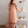 Embroidered Chiffon front with sequins Embroidered Chiffon back Embroidered Chiffon sleeves Embroidered organza sleeves lace Embroidered organza ghera lace Embroidered Net dupatta Raw Silk trouser Embroidered organza trouser lace