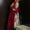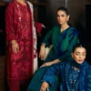With a silhouette painted in the delicacy of nature’s finest blooms, this ensemble is a poetic ode to floral inspiration. Paired with the quiet elegance of cotton pants and a pashmina shawl adorned with motifs reminiscent of the tree of life, it whispers tales of timeless beauty.