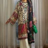In the embrace of a digital printed linen shirt, chintz, mughal opulence, floral dreams, and geometric intricacies converge, fashioning a tapestry of timeless style, while finding its perfect companions in cosmic cream cotton-dyed pants and a drape adorned with bold Russian floral motifs, completing a poetic ensemble.