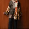 In a symphony of style, this silhouette marries the elegance of Indian booti with the timeless allure of European flora, while its intricate ottoman-inspired embroidery adds a regal touch. Accompanied by cotton-dyed pants and a printed dupatta, it’s an ensemble that speaks the language of cultural fusion and sartorial grace.