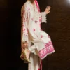 In the garden of style, the blossoming elegance of a floral trellis-inspired printed shirt intertwines with the earthy allure of cotton-dyed pants, all crowned by the ethereal embrace of a floral-printed khaddar dupatta.