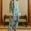 In the garden of style, the blossoming elegance of a floral trellis-inspired printed shirt intertwines with the earthy allure of cotton-dyed pants, all crowned by the ethereal embrace of a floral-printed khaddar dupatta.