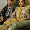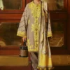 In the world of attire, a dyed slub shirt with titanium yellow embroidery stands as a radiant storyteller, accompanied by the serene simplicity of cotton-dyed pants, all wrapped in the intricate narratives of a printed pashmina shawl, crafting an ensemble that whispers tales of elegance.
