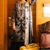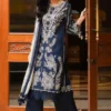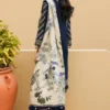 With a silhouette painted in the delicacy of nature’s finest blooms, this ensemble is a poetic ode to floral inspiration. Paired with the quiet elegance of cotton pants and a pashmina shawl adorned with motifs reminiscent of the tree of life, it whispers tales of timeless beauty.