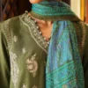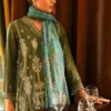 In the timeless embrace of traditional embroidery, threads of heritage and culture intertwine like whispers from the past. Paired with the serene grace of cotton pants and a printed pashmina shawl adorned with the intricate motifs of kashmiri paisley, this ensemble tells a story of the rich legacy of craftsmanship.