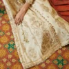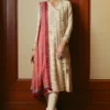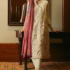 In the timeless embrace of traditional embroidery, threads of heritage and culture intertwine like whispers from the past. Paired with the serene grace of cotton pants and a printed pashmina shawl adorned with the intricate motifs of kashmiri paisley, this ensemble tells a story of the rich legacy of craftsmanship.