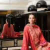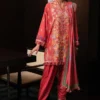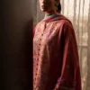 Amidst a garden of art and craft, the shirt emerges as a living canvas, adorned with motifs that draw inspiration from robust blossoms and intricate trellis work. In harmonious partnership, it finds its counterpart in cotton pants, which gently convey a message of simplicity and comfort. Draped alongside is a printed pashmina shawl, embellished with patterns that pay homage to the bold motifs of the Mughal era, telling a vivid narrative of sartorial grace and cultural amalgamation.