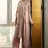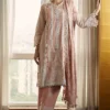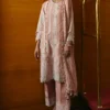 An empyrean journey begins in this ensemble, where the shirt is a canvas of artistry adorned with embroidery motifs inspired by the timeless elegance of Indian paisley and lace. Paired gracefully with cotton-dyed pants featuring delicate paste prints, and an embroidered shawl reminiscent of intricate trellis work, it weaves a narrative of exquisite craftsmanship and sartorial grace.