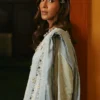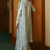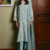 An empyrean journey begins in this ensemble, where the shirt is a canvas of artistry adorned with embroidery motifs inspired by the timeless elegance of Indian paisley and lace. Paired gracefully with cotton-dyed pants featuring delicate paste prints, and an embroidered shawl reminiscent of intricate trellis work, it weaves a narrative of exquisite craftsmanship and sartorial grace.