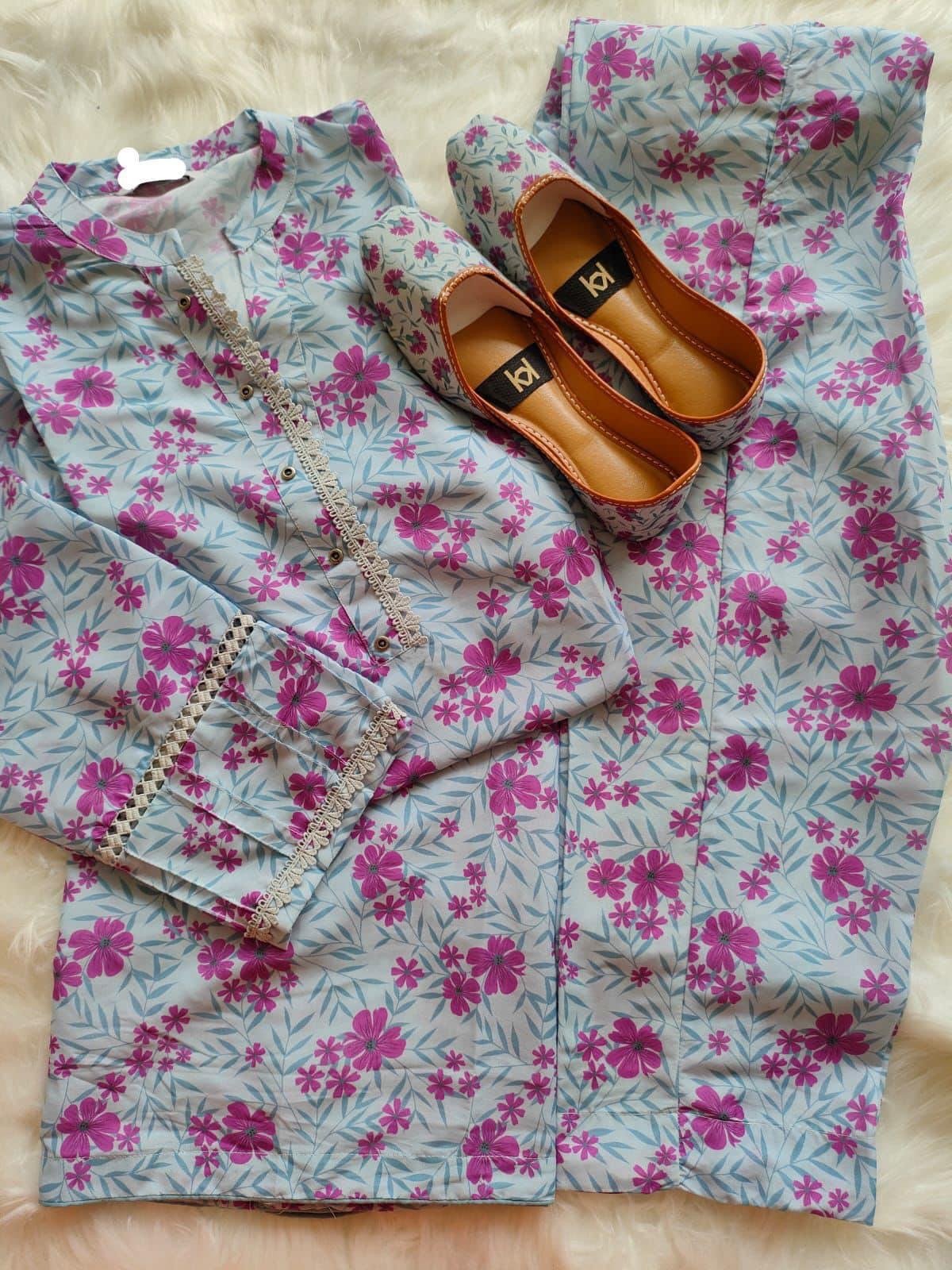 Stitched Digital Printed Swiss Voil Trouser with Complimentary Khussa