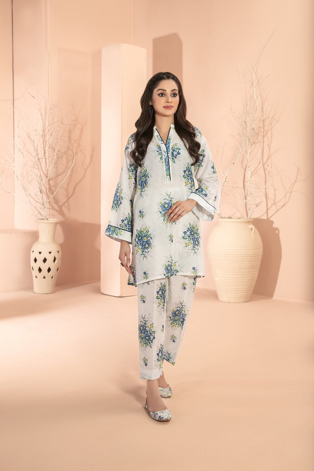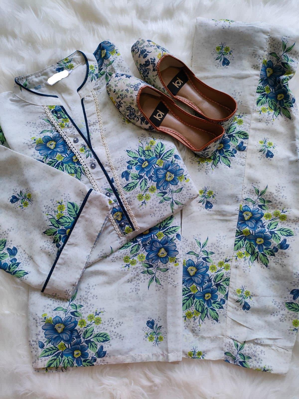 Stitched Digital Printed Swiss Voil Trouser with Complimentary Khussa